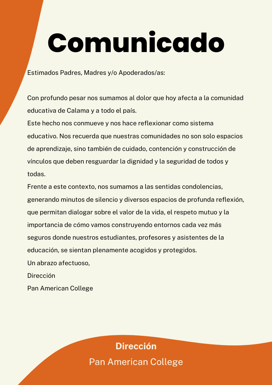 Frente a este contexto, nos sumamos a las sentidas condolencias, generando minutos de silencio y diversos espacios de profunda reflexión, que permitan dialogar sobre el valor de la vida, el respeto mutuo y la importancia de cómo vamos construyendo entornos cada vez más seguros donde nuestros estudiantes, profesores y asistentes de la educación, se sientan plenamente acogidos y protegidos.